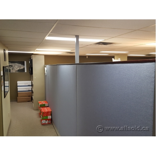 Blue Fabric Panel Office Cubicle Dividers, Dark Wood Trim