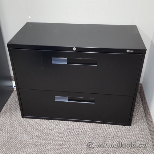 Global Black 2 Drawer Lateral File Cabinet, Locking