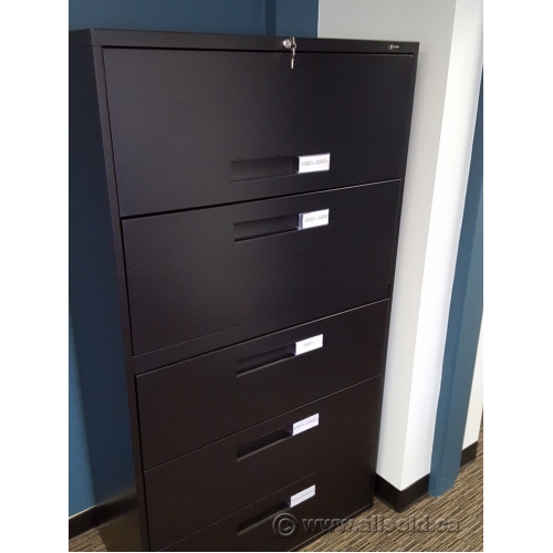 Global Black 5 Drawer Lateral File Cabinet, Locking