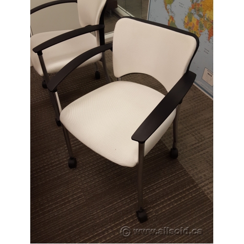 Upholstered seat and back. Outside back is solid plastic. Chrome frame.