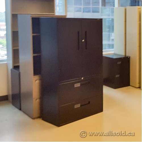 Teknion Black 2 Drawer Lateral File Cabinet with 2 Door Storage